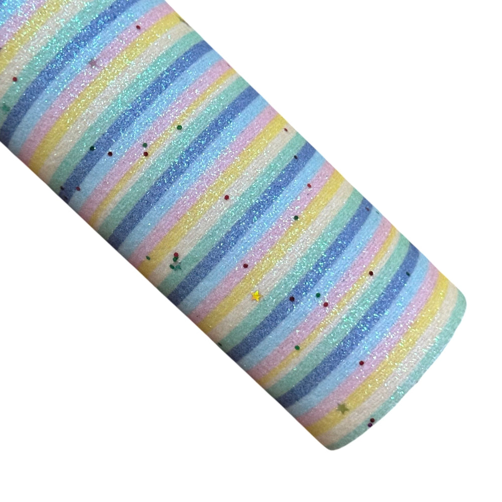 Pastel Rainbow Stripes and Stars Fine Glitter Fabric
