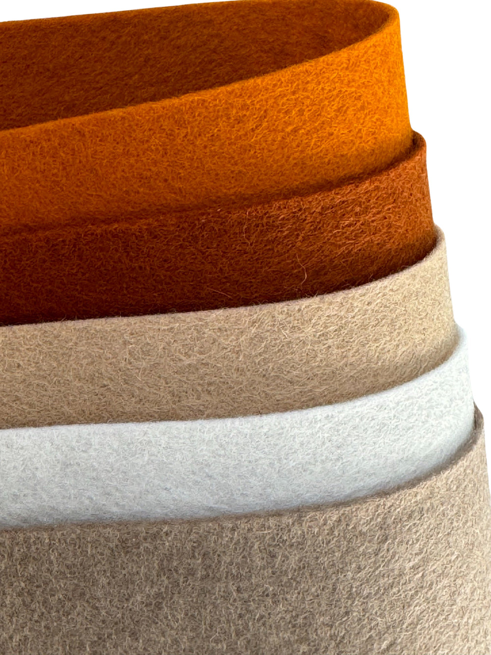 Made with fleece sourced right here from Australian and New Zealand sheep farms. Felted in Europe using natural soap, hot water and friction. The end result is of the highest quality, velvety soft yet strong.