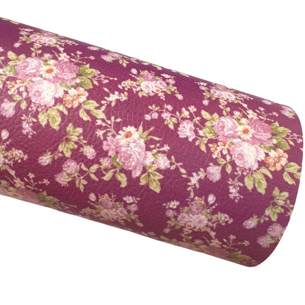 Faux cuir à imprimé floral prune - Feuilles A5 ou A4 en similicuir à imprimé floral litchi 0,9 mm