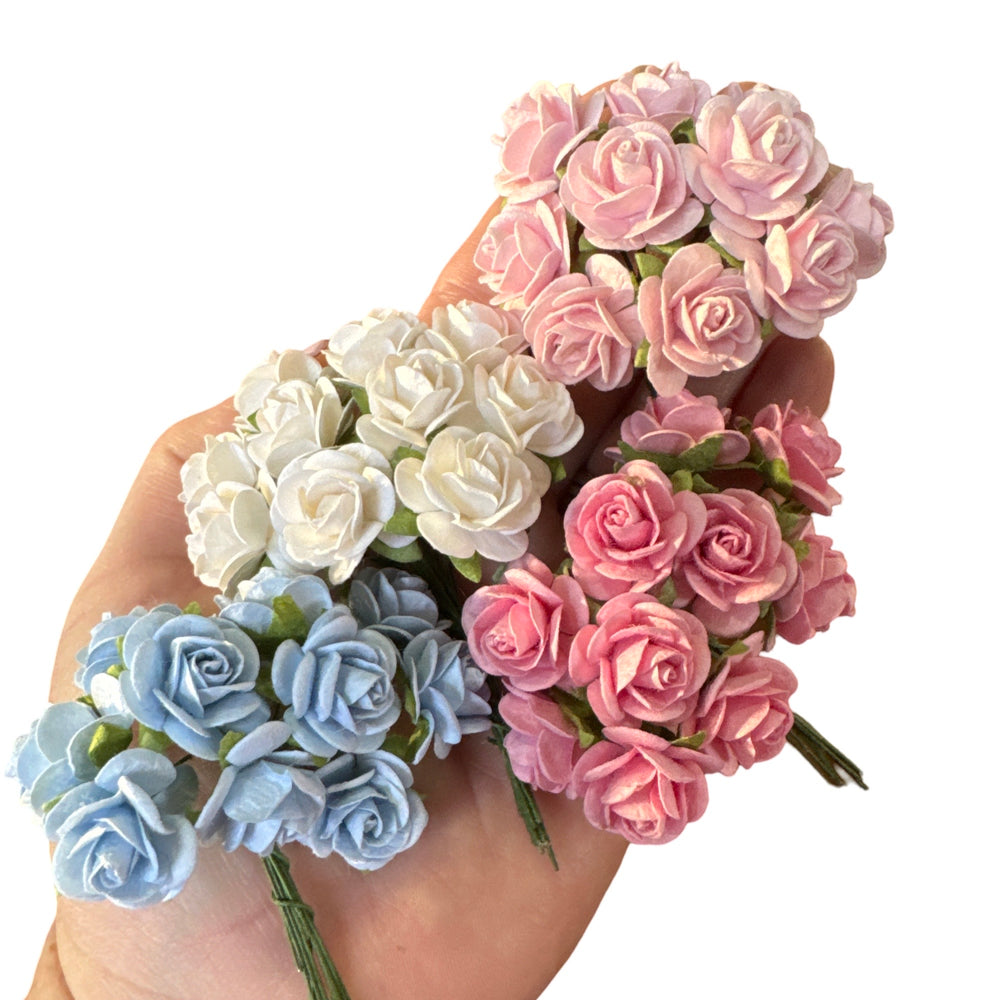 2cm Baby Blue Mulberry Paper Flowers - 2cm Rounded Petal Roses - Baby Blue Roses - 10 Pcs / 50 OR 100 Pcs