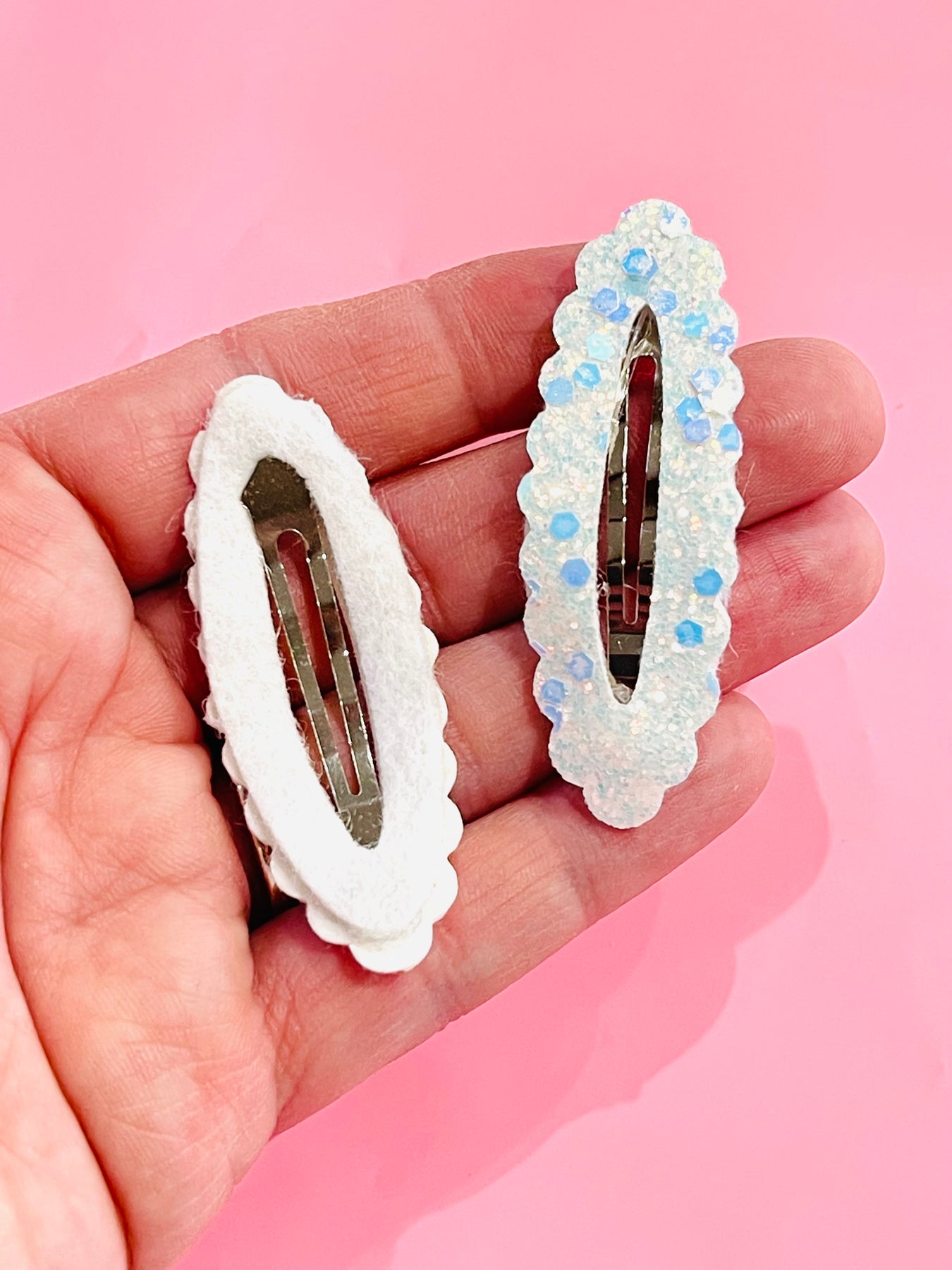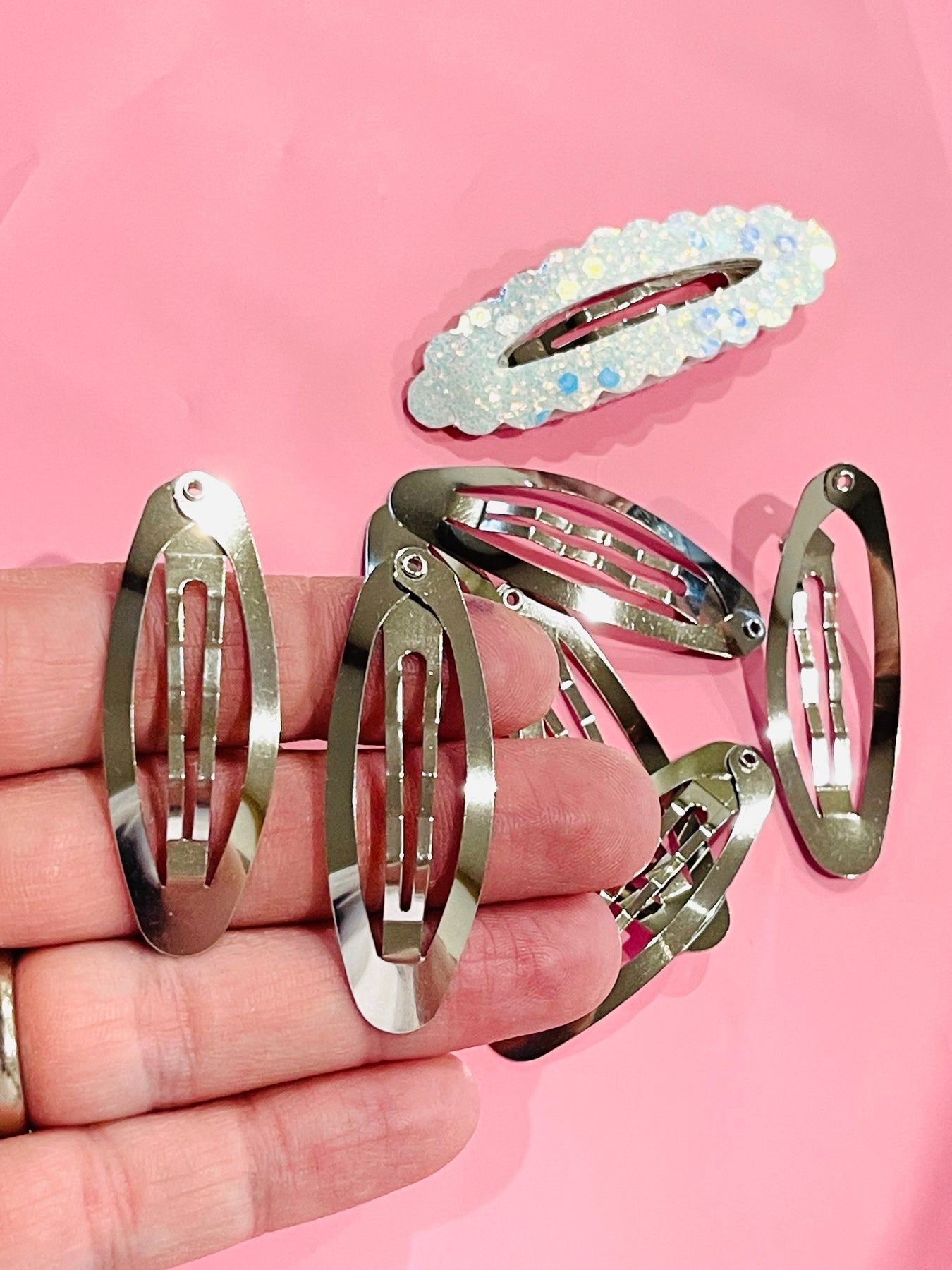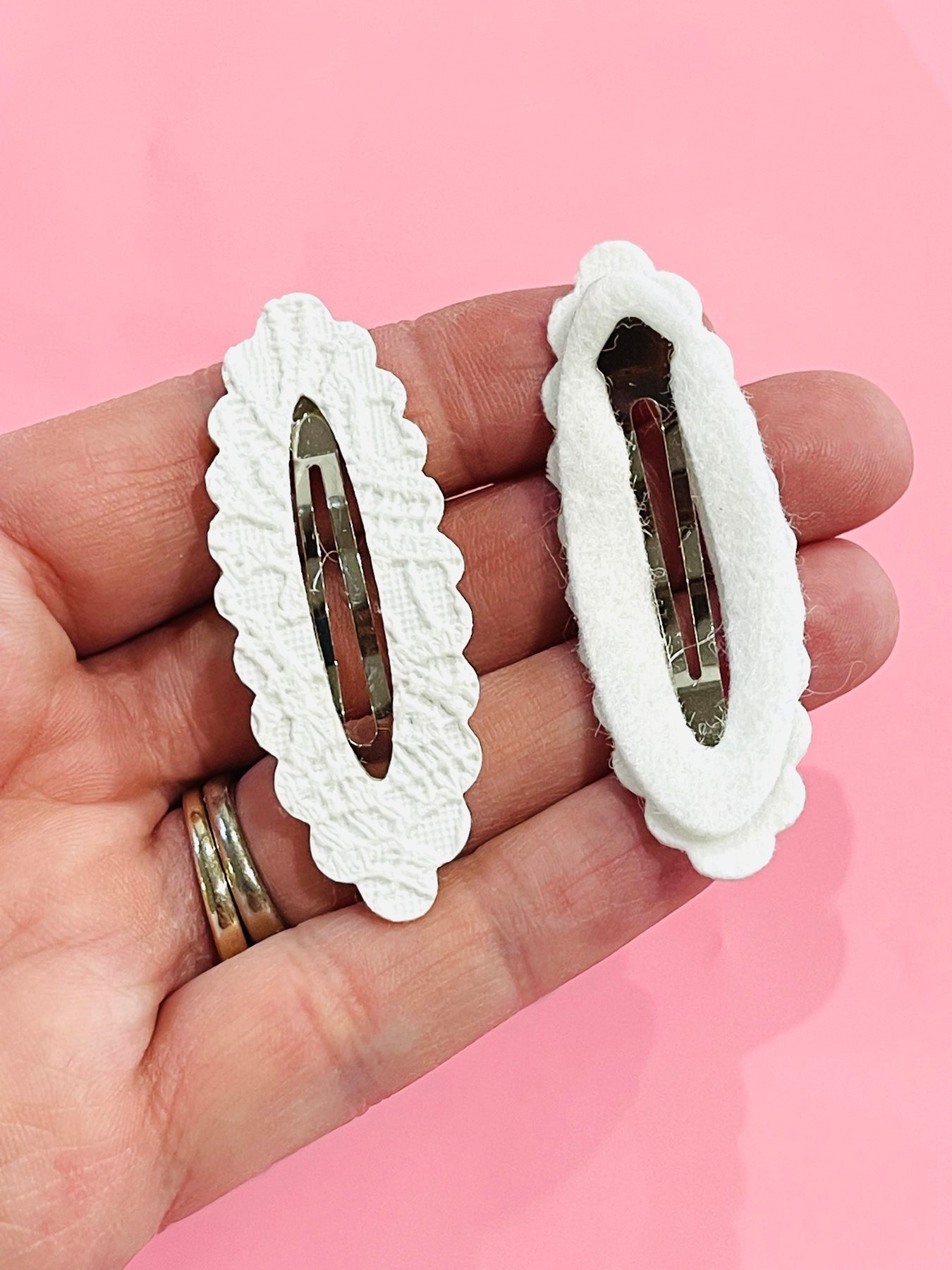Le centre de la matrice du clip est évidé pour créer la même forme que le clip à pression réel. La partie sacrée est un peu plus large que le clip à pression, donc un peu de métal sera visible. Le tissu est collé sur le clip, selon le type de tissu utilisé et le type de colle que vous utiliserez.